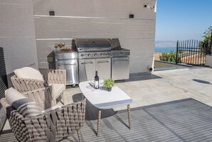 המתחם החיצוני מצויד במטבח חיצוני מאובזר, פינות ישיבה נוחות וריהוט גן יוקרתי. בנוסף, תמצאו מתקני חצר לילדים, מיטות שיזוף ועמדת מנגל BBQ.