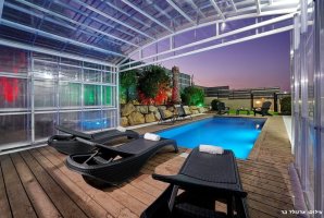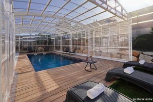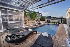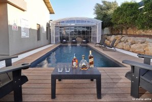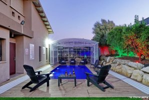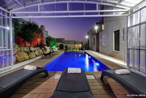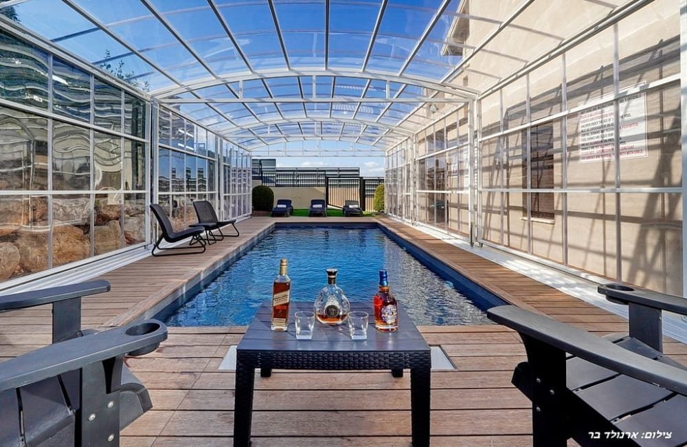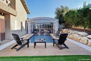 הוילה מתהדרת בנוף פנורמי עוצר נשימה להרים, לצד בריכת שחייה פרטית מגודרת עם חימום, המבטיחה הנאה בכל עונות השנה. הבריכה המקורה מוסיפה שכבה נוספת של פרטיות, כך שתוכלו להירגע במים בכל זמן שתרצו.