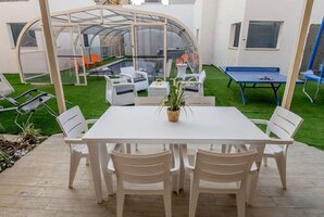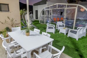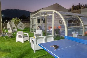 חצר הנופש העשירה של הווילה כוללת גם פינות ישיבה ושיזוף, שולחן פינג פונג, טרמפולינה לילדים, ערסל, עמדת ברביקיו.