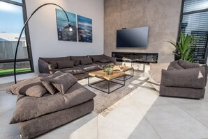 המתחם הפנימי מעוצב ומאובזר ברמה גבוהה עם ריהוט מודרני יוקרתי. כבר בכניסה אל הווילה תרגישו את הרף הגבוה. לרשותכם מסך שטוח גדול, ערוצים של יס, שולחן אוכל, קמין חשמלי לימי החורף הקרים, פינת ישיבה, מטבח מאובזר ונוח. יש במטבח גם מכונת אספרסו ומיני בר מים.