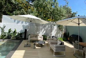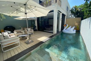 המתחם החיצוני משדרג את האירוח. אורחי הווילה נהנים מבריכה פרטית מגודרת לבטיחות הילדים. משפחות וקבוצות חברים מעבירות שעות של הנאה סביב הבריכה עם מתנפחים, מוזיקה, ברביקיו, משחקים לילדים. החצר כוללת מתקנים לילדים, שולחן כדורגל, טרמפולינה, פינות ישיבה, מיטות שיזוף והרבה אוויר צח.