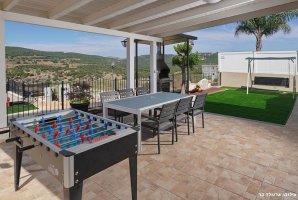 האחוזה מצוידת במטבח מאובזר עם כל הדרוש - מקרר, תנור, כיריים, מיקרוגל וקומקום חשמלי. המתחם החיצוני כולל מתקני חצר לילדים, עמדת מנגל BBQ, ופינות ישיבה מרווחות עם ריהוט גן חיצוני וערסלים.