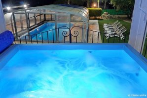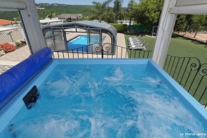 המתחם החיצוני של האחוזה כולל בריכת שחייה פרטית מגודרת מחוממת ומקורה, לצד ג'קוזי ספא. זו ההזדמנות המושלמת להירגע וליהנות מרגעים של שלווה ופינוק.