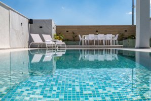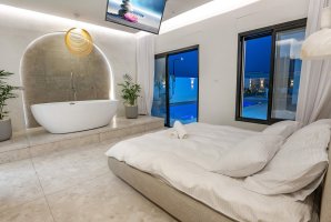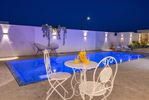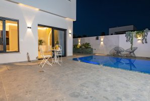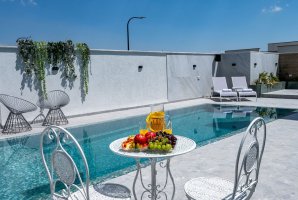 הוילה מתהדרת בבריכת שחייה פרטית, מחוממת ומקורה - אידיאלית לכל עונה. הבריכה מגודרת לבטיחות מקסימלית, כך שתוכלו להירגע בשלווה מוחלטת.