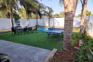 אורחי הווילה מוזמנים ליהנות מבריכה פרטית בחצר. הבריכה מוקפת מדשאה ויש גם פינות ישיבה, שולחן פינג פונג, מיטות שיזוף ועמדת מנגל. בתוך הווילה תמצאו מערכת מיזוג אוויר שמבטיחה טמפרטורה נעימה בכל חודשי השנה. הסלון מתאים לאירוח וצפייה בסרטים או תכניות טלוויזיה (ערוצי יס). סיימו את היום ברחצה לילית בבריכה וסרט טוב שכבר מזמן רציתם לצפות בו. אירוח סיגל הוא הזדמנות לנוח, להתפנק ולנשום אוויר צח.
