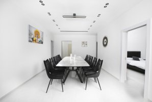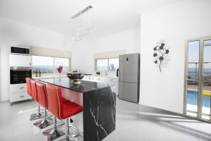 אם אתם מעדיפים לבלות במתחם ממוזג הנכם מוזמנים אל סלון מרווח ויוקרתי. הסלון כולל מסך שטוח גדול, מערכת סטריאו, ערוצים וסרטים של יס, שולחן פוקר ופינת ישיבה נוחה. המטבח מאפשר הכנת ארוחות מלאות. את הבוקר תפתחו עם אספרסו טרי שתכינו בקלות במכונה שממתינה במטבח.