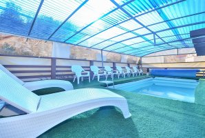 סלון מרווח ומפנקי ממתין לכם עם פינת ישיבה נוחה, מסך גדול 58 אינטש, חבילת ערוצים של יס, נוף פנורמי מרהיב, אינטרנט אלחוטי חינם. חצר הנופש של האחוזה מבטיחה שתיהנו מכל רגע עם בריכה פרטית מחוממת ומקורה בעונה, ג'קוזי זרמים מפנק, שולחן סנוקר, פינג פונג, עמדת ברביקיו, פינת משחקים לילדים, מיטות שיזוף, פינות ישיבה.