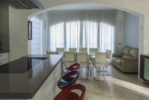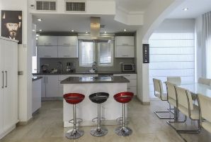 לרשותכם סלון יוקרתי ומפנק עם פינת ישיבה מפוארת, מסך גדול, חבילת ערוצים של הוט, מערכת סטריאו. המטבח של וילה אדמונית מפואר ומאובזר כמו בקטלוג. אתם מוזמנים לבשל את הארוחות שלכם במטבח עם מקרר גדול, כיריים, תנור, מדיח כלים, מיקרוגל, כלי מטבח שימושיים, 2 כיורים ועוד.