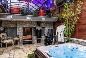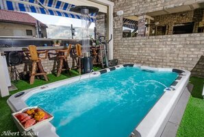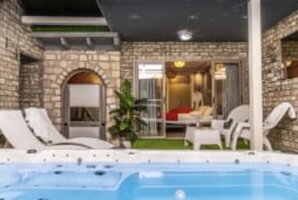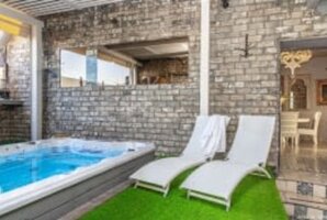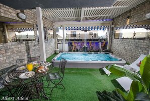הוילה מתהדרת במתחם חיצוני מרהיב, בריכת זרמים מרעננת וג'קוזי ספא מפנק. בנוסף, תוכלו למצוא פינות ישיבה נוחות, מיטות שיזוף, מטבח חיצוני מאובזר ועמדת מנגל BBQ, שיהפכו כל יום לשהייה ליום של חגיגה.