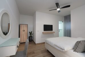 הלינה היא ב-5 חדרי שינה מפנקים עם מיטה זוגית קינג סייז ומזרן אורתופדי. לצד המיטה שידות אחסון ופינת טואלט עם מראה. אל מול המיטה מסך טלוויזיה עם ממיר הוא ומבחר ערוצים. בצמוד אל כל חדר שינה תמצאו חדר רחצה עם שירותים ומקלחת. החדרים כולם מעוצבים ומאובזרים ברמה גבוהה.