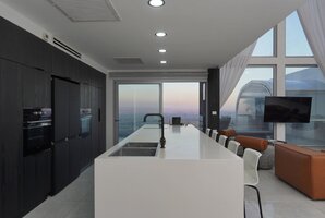 עיצוב מודרני מרהיב עם כל הדרוש לבישול נוח במהלך השהייה במתחם הווילה. המטבח כולל מקרר גדול, כיריים, 2 תנורי אפייה (בשרי וחלבי), קומקום חשמלי, מיקרוגל, בר קפה, פינת אוכל גדולה ל-20 איש עם אפשרות ליותר.