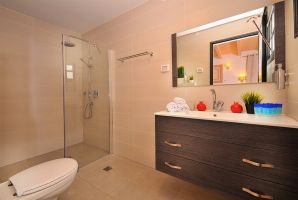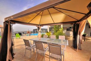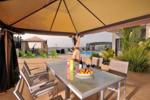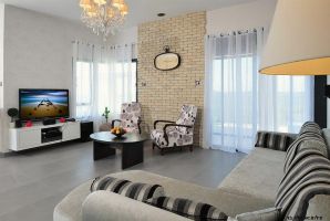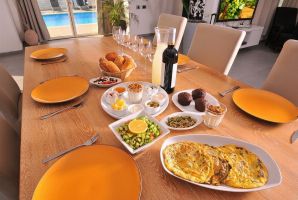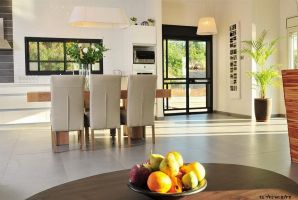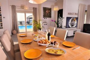 פנים הווילה מעוצב בסגנון יוקרתי אלגנטי עם מרחב תנועה נוח, הרבה אור, נוחות ופריטי ריהוט מעוצבים בסגנון בוטיק. הסלון כולל פינת ישיבה יפהפייה, 2 כורסאות נוחות, מסך גדול, מבחר ערוצים, מיזוג אוויר, חלון גדול המשקיף על הנוף וגישה אל פינת אוכל יוקרתית נעימה. מטבח מאובזר כמו של וילה ארט יאפשר לכם לבשל בעצמכם את כל סוגי הארוחות.