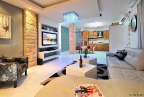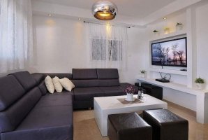 בכל וילה סלון עם פינת ישיבה, מסך טלוויזיה גדול, מערכת קולנוע ביתית המחוברת לממיר הוט.