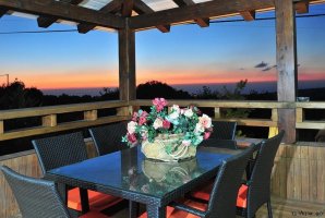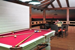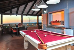 מרפסת נוף גדולה ממתינה לכם עם פינות ישיבה, עמדת בר, שולחן סנוקר ונוף מרהיב של מפרץ חיפה וראש הנקרה.