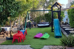 ילדים בכל הגילאים מתקבלים בברכה. תמצאו במתחם משחקי חצר ומתקני שעשועים. בעבור בני נוער נציע שולחנות משחק.