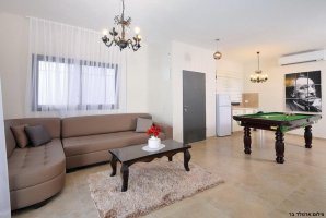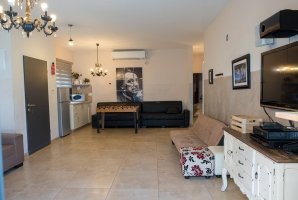 קומת הקרקע כוללת מטבחון מאובזר, סלון יוקרתי עם מסך טלוויזיה גדול ופינת ישיבה, 2 חדרי שינה זוגיים, חדר רחצה משותף ל-2 חדרי השינה. המפלס מציע שולחן סנוקר להנאתכם.