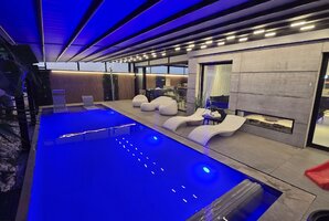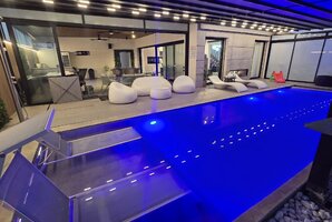 בוילה תיהנו מבריכת שחייה פרטית מגודרת, מקורה ומחוממת בחורף, לצד סאונה רטובה וג'קוזי ספא מפנק. המתחם החיצוני כולל פינות ישיבה נוחות, שולחן סנוקר חיצוני, שולחן פינג פונג ועמדת מנגל BBQ לאירוח מושלם.