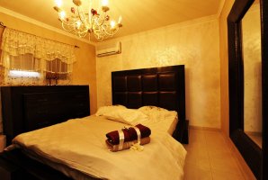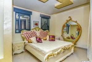 3 מפלסים מרכיבים את הווילה. 7 חדרי השינה מתחלקים בין המפלסים. אחד מחדרי השינה הוא סוויטה נשיאותית מפוארת עם תקרה גבוהה, מיטה זוגית מעוצבת עגולה, ארון בגדים מוסתר, מטבחון עם מיני בר, חדר רחצה ועוד.