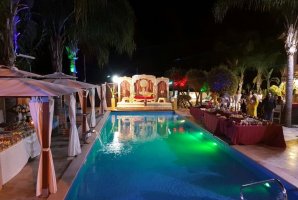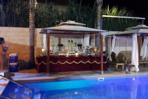 המבנה של הווילה מזכיר טירה. החלל הפנימי מרווח וגינה מטופחת עם בריכה ענקית מקיפה את המקום. לצד הבריכה תמצאו פינות ישיבה מרוהטות ריהוט גן יוקרתי. סביב הבריכה מתקיימים אירועים, מסיבות, ימי הולדת, השקות וצילומים.