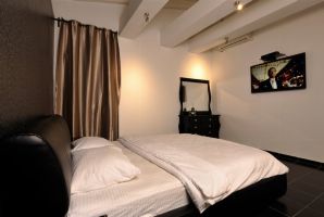 חדרי השינה מעוצבים גם כן באותו סגנון יוקרתי המשלב אלמנטים בצבע שחור ואלמנטים מנוגדים בצבע לבן. בכל החדרים מיטה זוגית, מצעים איכותיים, מיזוג אוויר, מסך טלוויזיה עם מבחר ערוצים, שידות, נופים וחדרי רחצה סמוכים.