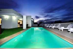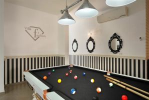 המתחם הפנימי של וילה פאשן מעוצב ברמה גבוהה בסגנון קלאסי יוקרתי, העיצוב מודרני אלגנטי. האירוח כולל 4 חדרי שינה זוגיים מפנקים, חדרי רחצה ושירותים, מטבח מאובזר, סלון יוקרתי וגם שולחן סנוקר מקצועי. קווי עיצוב נקיים עם שילוב בין שחור ולבן מלווים את עיצוב המתחם הפנימי. המטבח מאובזר בכל הדרוש ומעוצב בסגנון יוקרתי. מקרר גדול, כיריים, תנור אפייה ועוד ממתינים לבשלנים שבינכם במטבח. פינת אוכל יוקרתית מוצבת לצד המטבח.