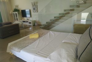 הלינה היא ב-6 חדרי שינה זוגיים עם מיטה זוגית מפוארת, מצעים איכותיים, כלי מיטה מובחרים, מיזוג אוויר וריהוט משלים יוקרתי. בחדרי הרחצה יש מייבש שיער. ישנן שש ספות יחיד נפתחות, 4 מזרנים ו-3 לולים.