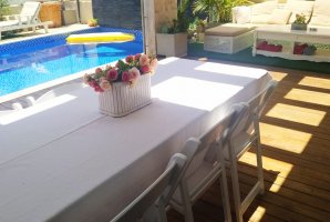 כאשר אנחנו שוכרים וילה מיד נרצה לדעת מה כוללת החצר ובעיקר, האם יש בריכה. כאן בווילה אתם נהנים מבריכה פרטית מחוממת בעונה (מגודרת), ג'קוזי ספא מקורה, פינות ישיבה נוחות (עם כריות), מיטות שיזוף, עמדת מנגל ושולחן גינה.