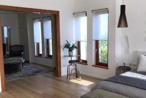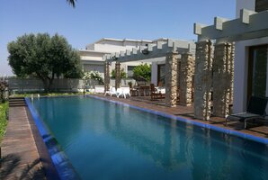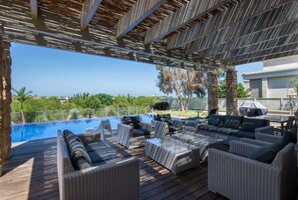עיצוב הווילה משלב אלמנטים מודרניים ויוקרתיים, עם פינות ישיבה נוחות וריהוט גן חיצוני המושלם למנוחה ולשיזוף. הווילה כוללת גם בריכת שחייה פרטית, עמדת מנגל BBQ ומיטות שיזוף, כך שתוכלו ליהנות מהשמש הישראלית באווירה פרטית ונינוחה.