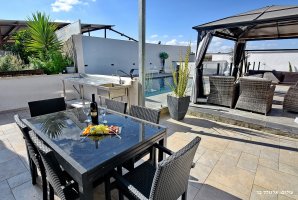 את וילה אחוזת האושר מקיפה חצר נופש מטופחת עם בריכה מגודרת ומחוממת בעונה. הבריכה משדרגת כל חופשה משפחתית. מתקני חצר לילדים מבטיחים רגעים של הנאה בעבור הקטנטנים בעוד ההורים משגיחים עליהם מפינת הישיבה. בחצר גם מטבח חיצוני, שולחן גינה, עמדת מנגל. לרשותכם בחצר גם שולחן סנוקר.