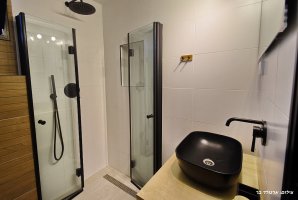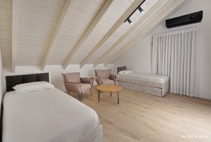 לינה ב-4 חדרי שינה (מתאים לזוג/ 2 זוגות + 8 ילדים). סלון משפחתי, קמין חשמלי המבטיח חורף חם, מטבח מאובזר המתאים לבישול ארוחות מלאות על כיריים. מכונת אספרסו תבטיח שתפתחו את הבוקר בהנאה עם ספל אספרסו בגינה. בחדר הרחצה תיהנו מאמבט ספא.