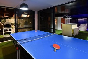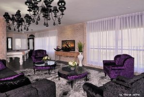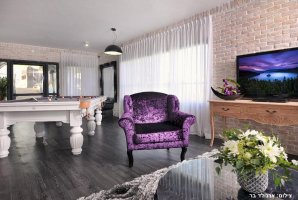 לרשותכם סלון מפנק ומעוצב עם כורסאות קטיפה נוחות, מסך גדול, שטיחים, שולחן סנוקר מקצועי, מיזוג אוויר.