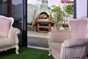 החצר מטופחת, מושקעת ועשירה בפינוקים.