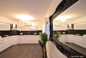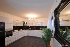 כראוי לווילת נופש יוקרתית כוללת וילה לה פרלה מטבח מעוצב ומאובזר שיש בו הכול. המטבח כולל מקרר גדול, בר מים, כיריים, תנור אפייה, כלי בישול ואכילה, פינת אוכל גדולה.