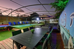לא שכחנו להוסיף לחצר גם פינות ישיבה, מיטות שיזוף, עמדת מנגל להכנת ארוחת בשרים ישראלית ושולחן פינג פונג לאלו שאוהבים משחקים ותחרויות.