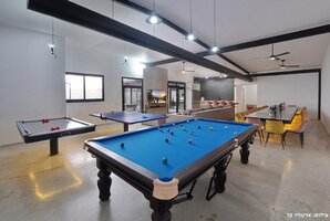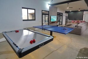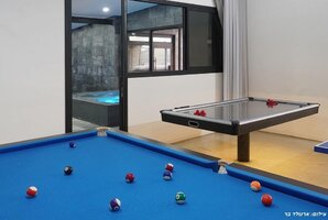 המתחם החיצוני של הוילה הוא גן עדן של פעילות והנאה. במתחם בריכת שחייה חיצונית מגודרת, בריכה פנימית מחוממת ומקורה, ג'קוזי ספא מפנק, ומתחם משחקים הכולל שולחנות סנוקר, פינג פונג והוקי אוויר. בנוסף, לרשותכם מטבח חיצוני מאובזר ועמדת מנגל BBQ (לא לשימוש בשבת), מיטות שיזוף ופינות ישיבה מפנקות.