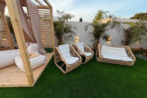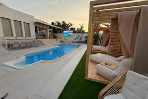 הוילה מעוצבת בקפידה ומציעה פרטיות מלאה, המבטיחה חוויה רומנטית לזוגות או חופשה משפחתית מפנקת. המתחם כולל מגוון אזורי ישיבה, חצר פרטית ופינות מנוחה, מה שמבטיח שקט ושלווה במהלך השהייה. בוילה 8 חדרי שינה (מתוכן 2 סוויטות עם שירותים ומקלחת צמודים)