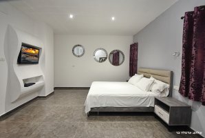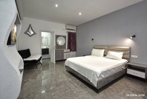 לינה במיטה זוגית נוחה עם מצעים רכים, חדר רחצה פרטי, מיזוג אוויר, מסך טלוויזיה עם ממיר YES, 2 כורסאות, קומודה עם מראה. הסוויטות כולן מעוצבות בסגנון יוקרתי מודרני.