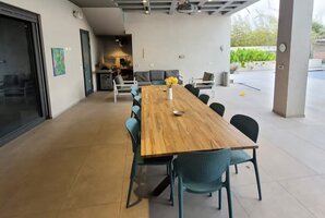 הוילה מציעה פרטיות מושלמת עם בריכת שחייה פרטית מחוממת, פינות ישיבה מפנקות וריהוט גן חיצוני יוקרתי. במתחם החיצוני תמצאו מגרש כדורגל, שולחן פינג פונג ועמדת מנגל BBQ.
