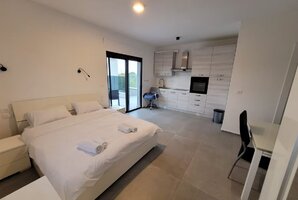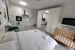 המטבח מאובזר בתנור, תמי 4, מכונת אספרסו ומדיח כלים, מה שמבטיח חוויית בישול מהנה. בכל יחידה יש מסך LCD עם טלוויזיה בלוויין YES, שולחן כתיבה ופינת ישיבה לנוחות מרבית.