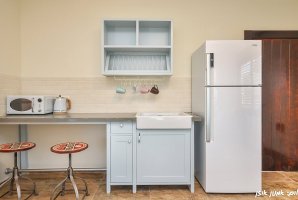 איזה אבזור קיים במטבח של וילה דרך היער?האבזור הקיים במטבח של וילה דרך היער: קומקום חשמלי, תנור, מכונת אספרסו / קפה, מקרר, כיריים, מיקרוגל.