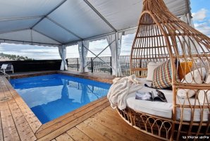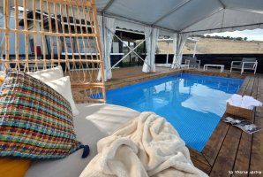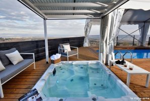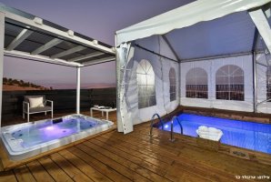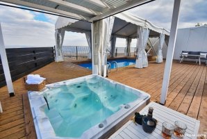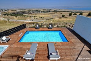 רחצה לילית בבריכה פרטית אל מול נופי הגליל הקסומים, סביב ממתינות מיטות שיזוף נוחות, פינות ישיבה, שולחן בר ואמבט ג'קוזי מפנק עם זרמים ומים חמימים. החצר של וילה טרויה מעוצבת ומטופחת, ריצוף דק עץ לבן יוקרתי, ריהוט גן מהשורה הראשונה, בריכה מושקעת וג'קוזי שוקע, כל אלו יחד עם נופי הכנרת יוצרים מתחם אירוח מרהיב ומפנק.