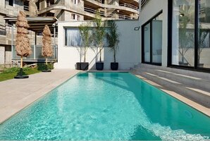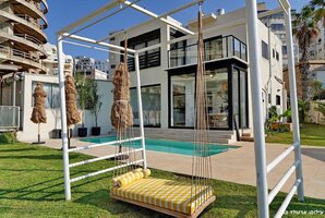 במתחם החיצוני תמצאו בריכת שחייה פרטית מגודרת ומחוממת, המבטיחה פרטיות מלאה ומזמינה אתכם להנות מרגעים מרגיעים ומפנקים. פינות הישיבה, מיטות השיזוף ועמדת המנגל משלימות את החוויה המושלמת.