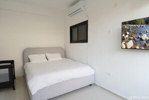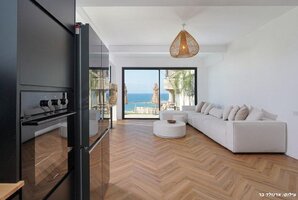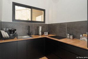 המטבח המאובזר כולל כיריים, תנור, מיקרוגל, מקרר וקומקום חשמלי לכל צרכיכם. לחוויית אירוח מושלמת, תמצאו גם פינת ישיבה נוחה ושולחן אוכל מרווח.