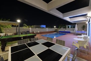 הווילה כוללת בריכת שחייה מגודרת ומחוממת, בה תוכלו להירגע וליהנות מג'קוזי ספא מפנק. האורחים מוזמנים ליהנות משולחן סנוקר חיצוני, מיטות שיזוף ונגישות מלאה לנכים, בכל עונות השנה.