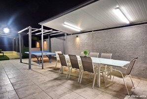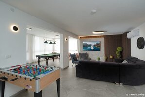 לפעילות חיצונית מרעננת, מציעה הוילה שולחן פינג פונג, כדורגל שולחן ושולחן הוקי אוויר. תוכלו ליהנות מארוחות תחת כיפת השמיים בעמדת המנגל (לא בשבת) ולהתרווח בפינות ישיבה מרווחות וערסלים נוחים.
