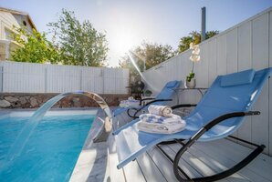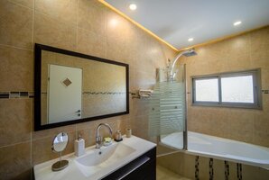 העיצוב הפנימי של הוילה מציע אבזור מלא עם מסך LCD, חיבור לטלוויזיה בכבלים HOT ו-Netflix, וכן פינת ישיבה נוחה. המטבח המאובזר כולל תנור, תמי 4, מקרר, מדיח כלים ועוד, מה שמאפשר להכין ארוחות באווירה ביתית. בחוץ תמצאו מתחם חיצוני מרהיב עם בריכת שחייה פרטית מחוממת, פינות ישיבה רומנטיות, ערסל לנוחות מושלמת, ופינת BBQ לארוחות משפחתיות מהנות.