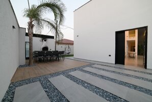 הווילה כוללת חמישה חדרי שינה מרווחים וחמישה חדרי רחצה מפוארים עם כל האבזור הנדרש, כולל מגבות רחצה רכות ושמפו ומרכך איכותיים. בנוסף, תמצאו כאן מטבח חיצוני מאובזר, מושלם לארוחות משפחתיות או זוגיות רומנטיות.