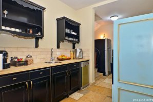 לרשות אורחי האחוזה מטבח מאובזר וגדול עם מקרר גדול, מיקרוגל, כלי אוכל ובישול, מכונת אספרסו טובה, בר מים תמי 4, תבלינים, עוגיות הבית, פינת אוכל משפחתית גדולה.