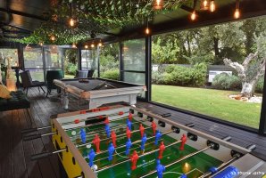 המתחם החיצוני מציע מגוון אטרקציות נופש כגון פינג פונג, כדורגל שולחן, שולחן הוקי אוויר ועמדת מנגל BBQ. כל זאת לצד מטבח חיצוני מאובזר ופינות ישיבה נוחות, ערסלים וריהוט גן חיצוני.