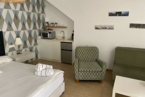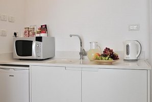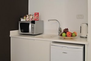 איזה אבזור קיים במטבח של סוויטות אגם בכנרת?האבזור הקיים במטבח של סוויטות אגם בכנרת: קומקום חשמלי, מכונת אספרסו / קפה, כיריים, מקרר קטן.